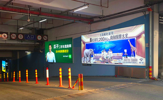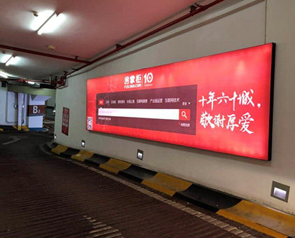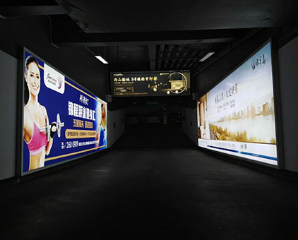 停車場室內(nèi)廣告拉布燈箱—該項目由我司提供鋁型材、LED燈、畫面以及技術(shù)安裝指導(不含安裝),全部燈箱都以墻面壁掛式展現(xiàn),燈箱安裝的完成的同時普通的停車場也升級形成了一道亮麗的廣告風采!